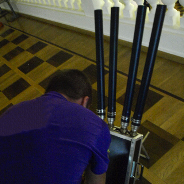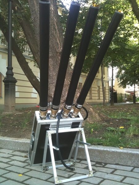 Яркое и безопасное шоу из конфетти, лепестков и серпантина легко организовать, взяв в аренду пневмопушку и CO₂-установку. Четырёхствольная конструкция (каждый ствол диаметром 50 мм) производит синхронный мощный выстрел на расстояние до 25 метров. Независима от электроснабжения, комплект массой всего 30 кг и габаритами 400х980х100 мм легко транспортируется и устанавливается.