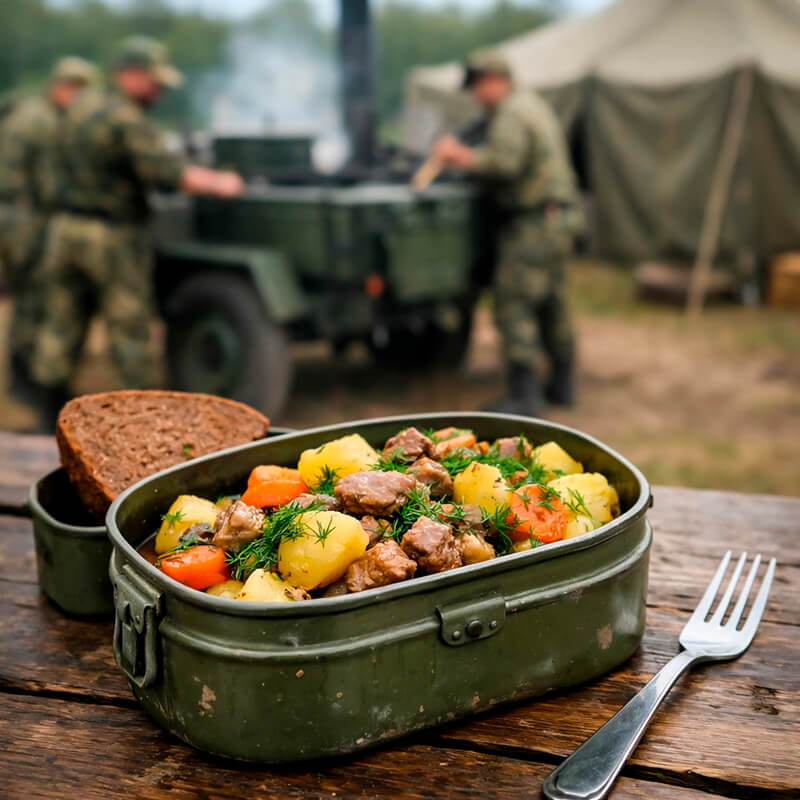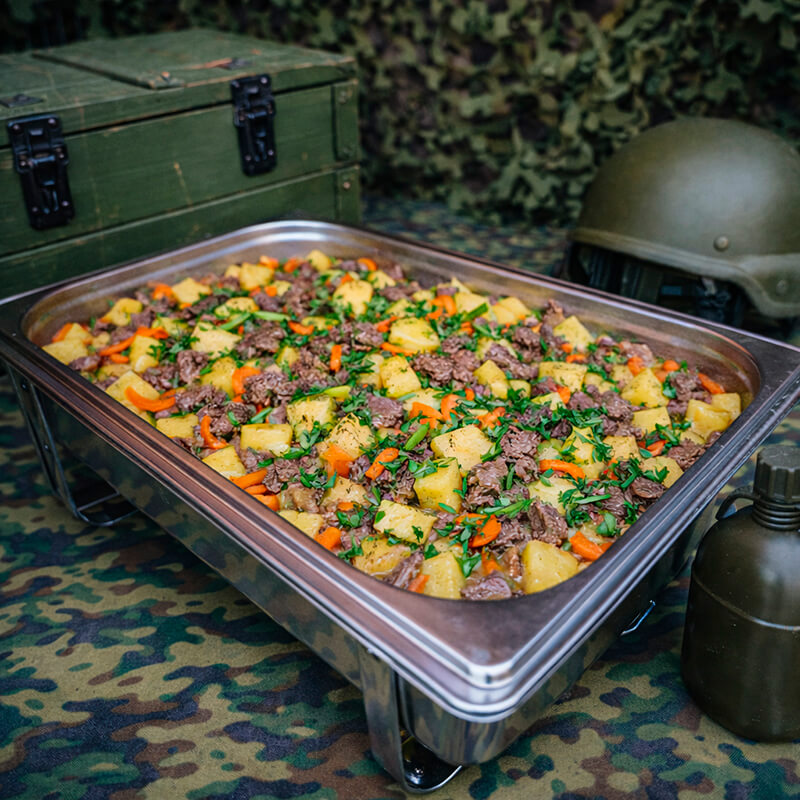 Картофель с тушенкой, с курицей или свининой — вкусное и сытное блюдо, которое идеально подходит для выездного кейтеринга. Это простое и универсальное блюдо готовится из картофеля, моркови, лука и качественного мяса. Картофель получается нежным внутри и с хрустящей корочкой снаружи. Мясо добавляет блюду насыщенный вкус и аромат, делая его идеальным для подачи на тематических мероприятиях в офисе или на открытом воздухе.