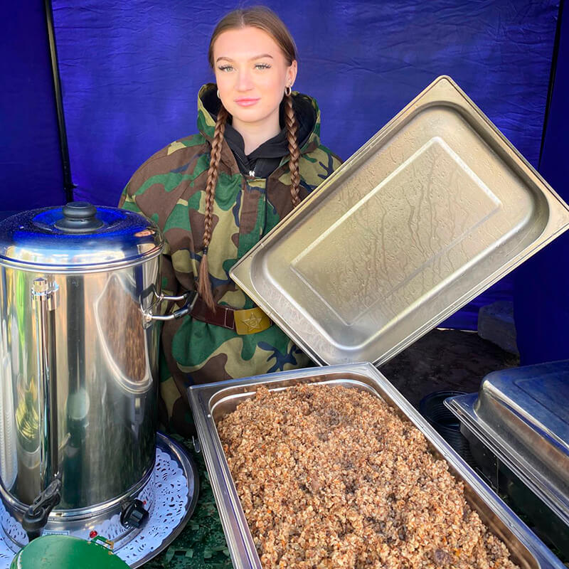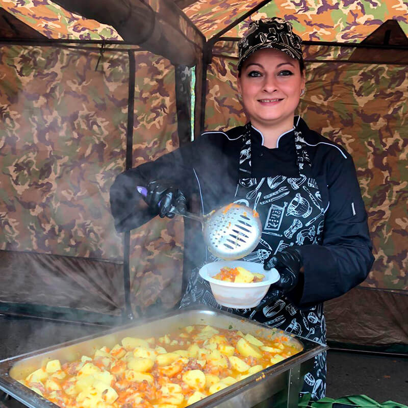 Организуем выездное питание на мероприятии с полевой кухней КП‑130. Предлагаем комплексное решение: доставка и монтаж оборудования, приготовление горячих блюд (супы, каши), готовый кейтеринг (пирожки, соленья, закуски, напитки), тематическое оформление зоны питания и обслуживание профессиональным персоналом.