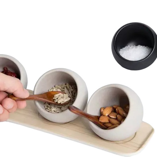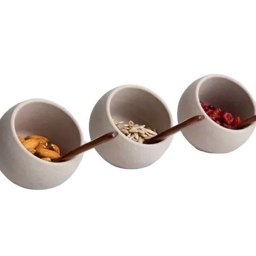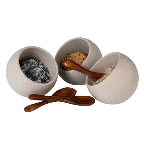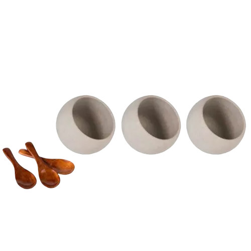 Полусфера Мун пластик с деревянной ложкой 50 мл серая
