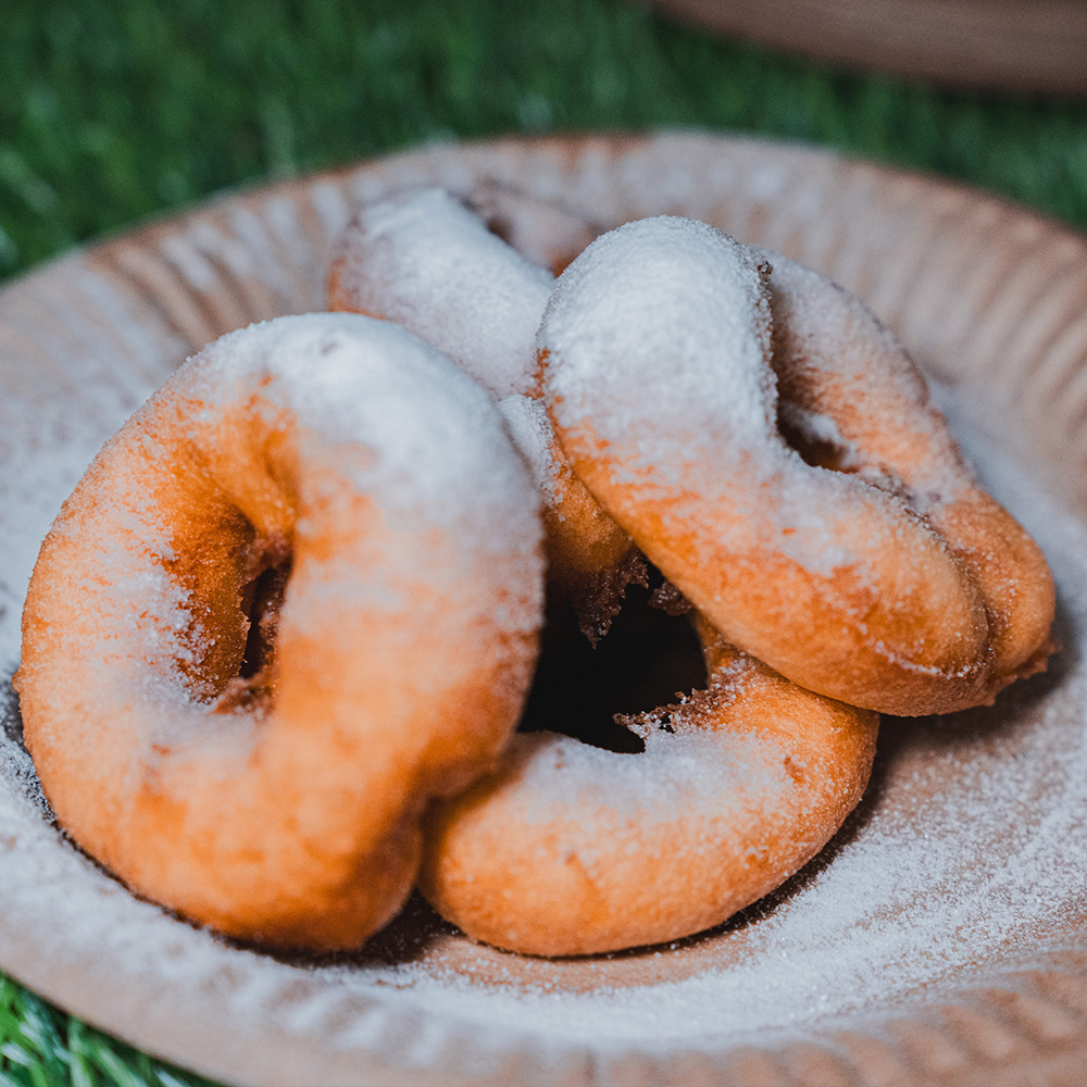 Воздушные, румяные пончики – идеальный выбор для уличного мероприятия. Нежное дрожжевое тесто и хрустящая корочка создают неповторимый вкус, знакомый с детства. Порция – 100 г.