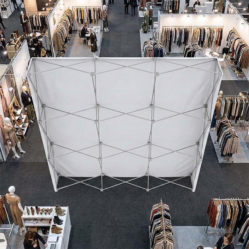 Pop Up Textile — это стенд с рекламным изображением, напечатанным на плотной ткани единым полотном. Материал не пропускает свет и не мнется при перевозке. Натянутый, он становится идеально ровным и гладким.