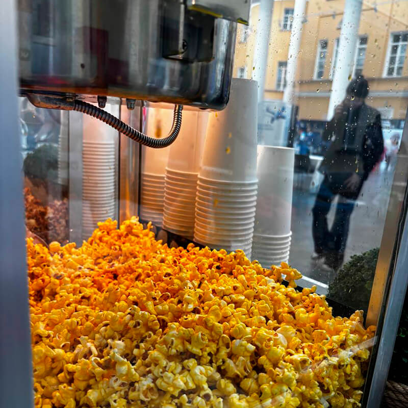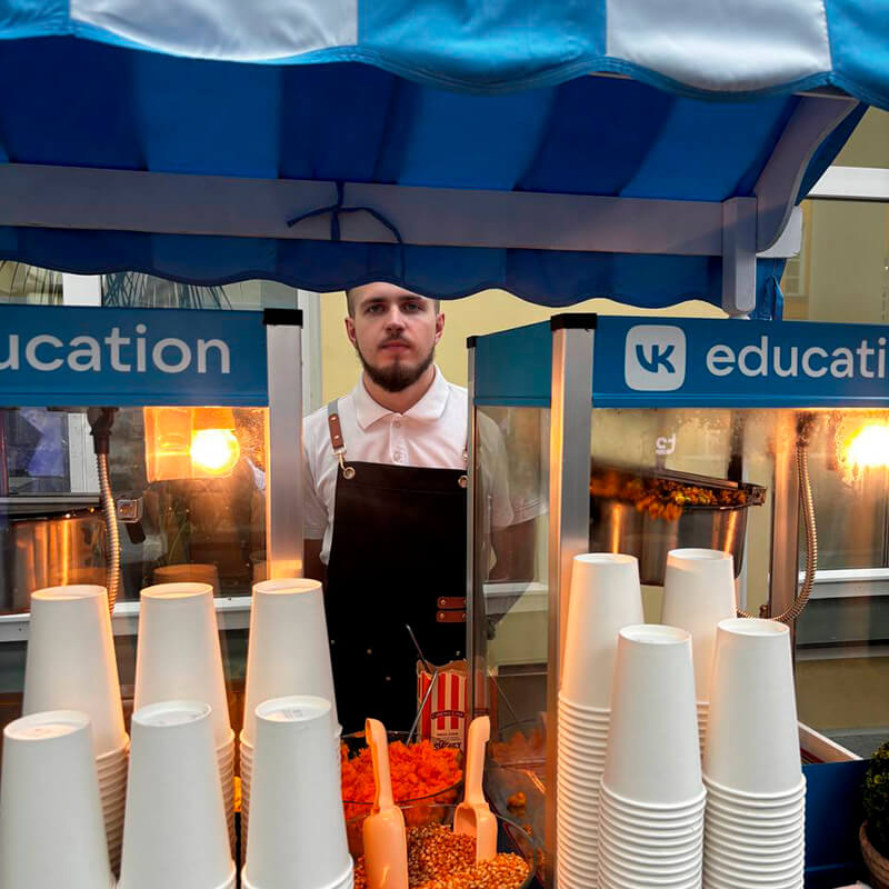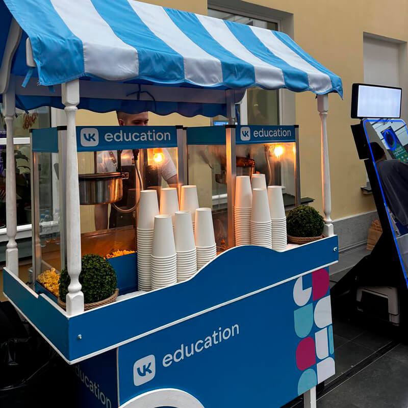 Аренда тележки с попкорном — отличное решение для угощения гостей. Предлагаем соленый, сладкий, сырный или карамельный попкорн из кукурузы, что разнообразит зону питания и добавит ярких красок в праздник.