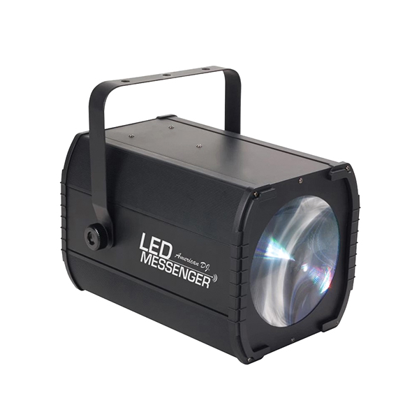 LED-проекторы серии American DJ идеально подходят для придания уникального стиля вашим мероприятиям. Модель Messenger предназначена специально для создания ярких и выразительных текстовых эффектов на любых поверхностях интерьера: стенах, полу, потолке. Благодаря специальной технологии «лунный цветок», эта установка автоматически синхронизируется с музыкой, создавая впечатляющую динамику смены цветов и форм букв в такт звучащему ритму.