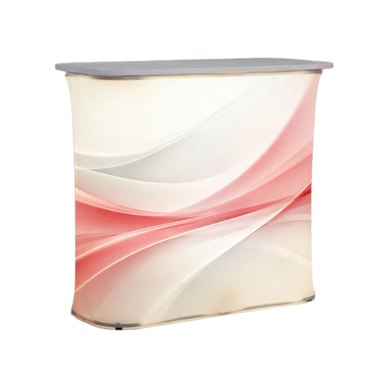Тканевая промостойка с полкой Альтек 1000 — это самая крупная стандартная модель в линейке. Она объединяет стиль, надежность и удобство. Этот мобильный рекламный стол идеально подходит для презентаций, выставок, форумов и других масштабных мероприятий, где важно много пространства для общения и демонстрации.