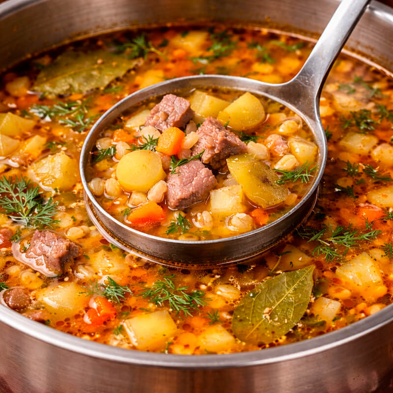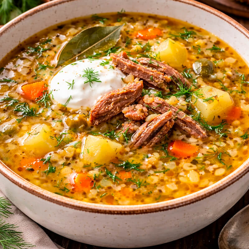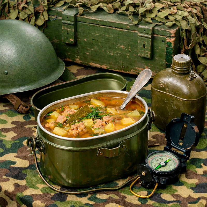 Рассольник - традиционный русский суп с характерной кисловато солёной основой. Его главные особенности мясной бульон (на говядине, свинине или курице), солёные огурцы (основной источник кислоты и вкуса), крупа (чаще перловка), овощи: картофель, морковь, лук. Мы можем организовать «полевую кухню» с супами, в том числе супом Рассольник.
