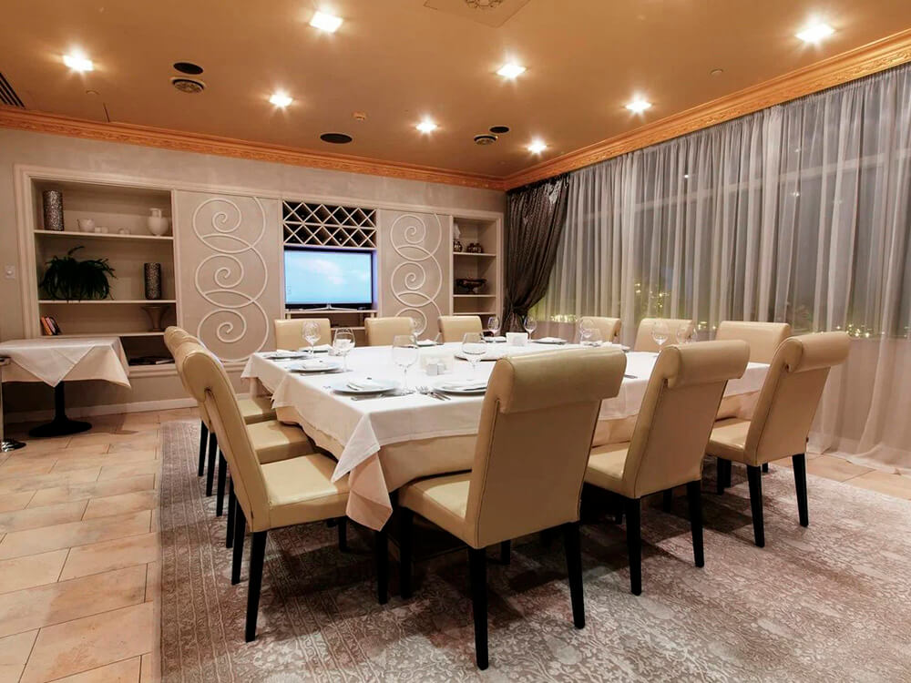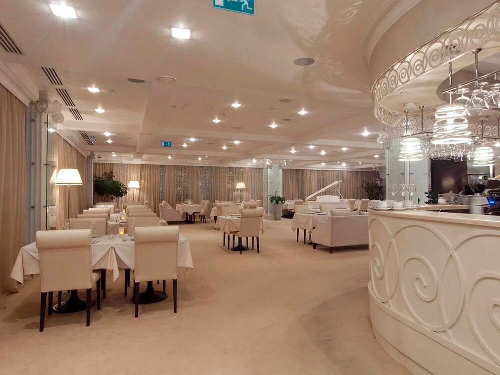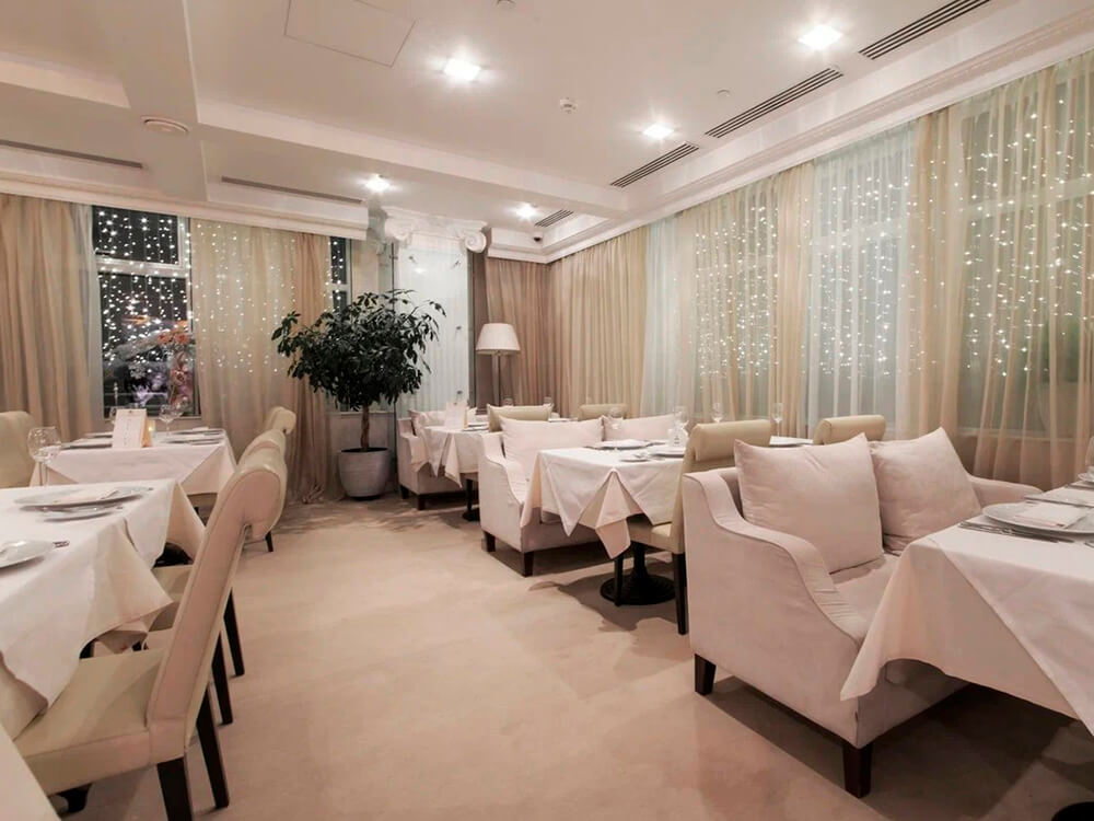 Ресторан Bellini в Москве предлагает несколько залов, включая просторный банкетный зал, идеально подходящий для проведения мероприятий и праздников. Просторный зал ресторана Bellini рассчитан на большое количество гостей и предлагает изысканную итальянскую и средиземноморскую кухню, приготовленную из свежих и натуральных продуктов. Интерьер ресторана продуман до мелочей, создавая атмосферу уюта и легкости, а панорамный вид на Москву-реку и заповедник «Крылатские холмы» добавляет особое очарование.