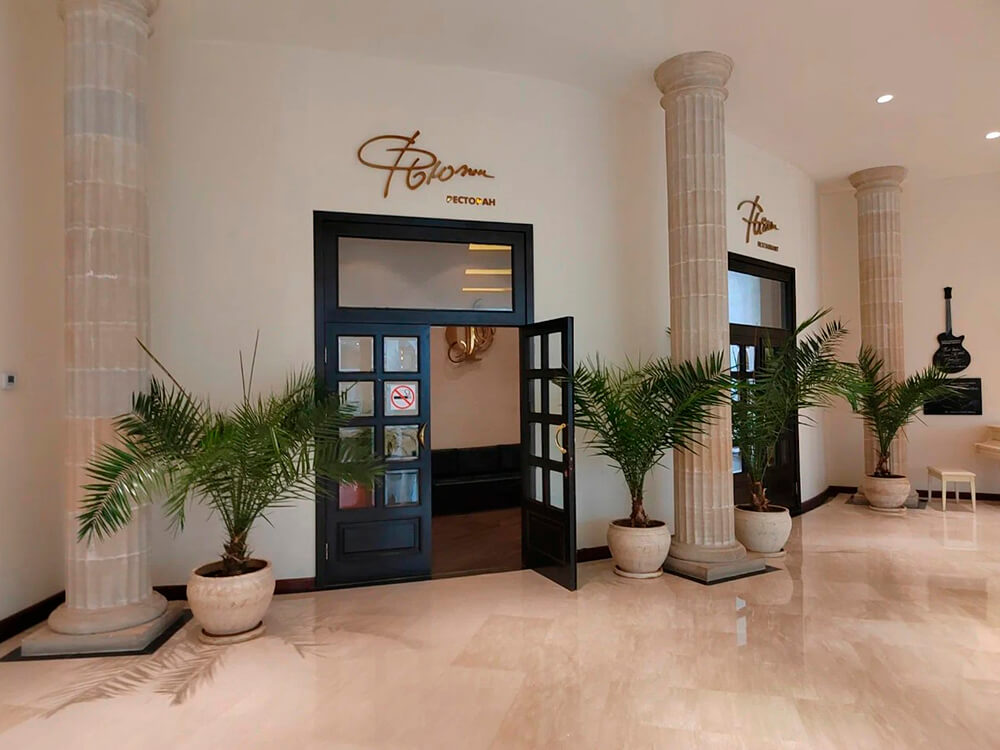 Ресторан Fusion в Красногорске («Крокус Сити Молл») — это уникальная площадка для организации памятных событий. Банкетный зал, способный вместить до 220 гостей, поражает своей величественной обстановкой: высокие потолки, купольная форма, элегантные драпировки, массивные колонны и роскошная люстра. Кулинарное предложение удивляет разнообразием вкусов Европы, Азии, Кавказа и России, позволяя каждому гостю создать индивидуальное меню. Особенное впечатление производит прилегающий балкон с захватывающим видом на берега Москвы-реки и белые яхты, особенно привлекательный летом.