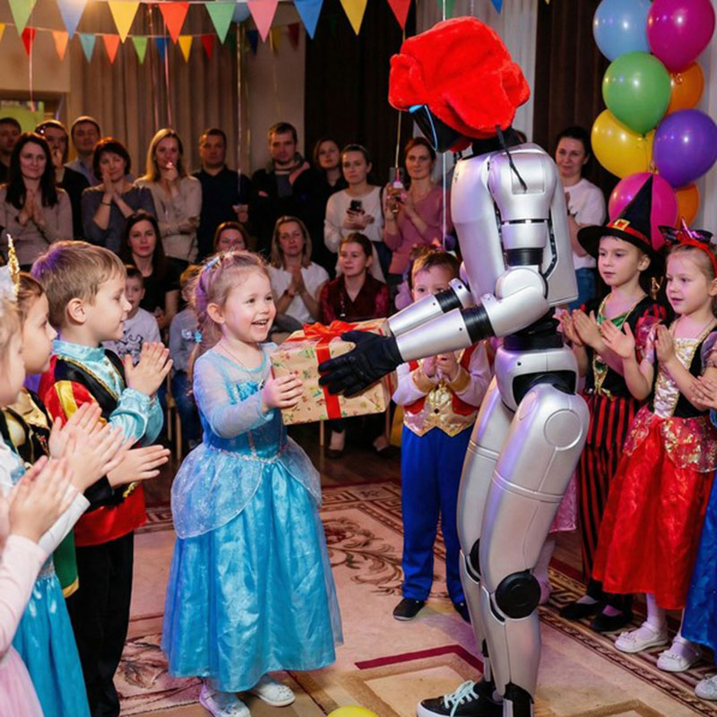 Будь то день рождения, выпускной в детском саду, новогодний утренник или тематическая вечеринка — робот‑гуманоид станет звездой мероприятия и подарит детям море ярких эмоций и незабываемых впечатлений. Каждый ребёнок сможет пообщаться с роботом, сделать фото на память и почувствовать себя героем фантастического фильма.