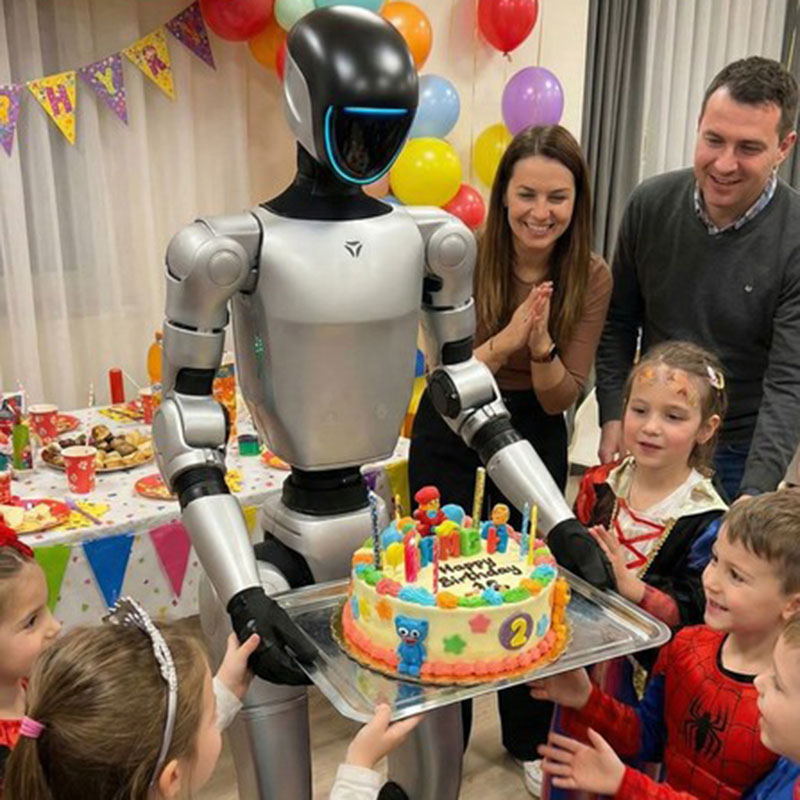 Это не просто техническое устройство, а харизматичный ведущий праздника, способный очаровать каждого ребенка. Он двигается плавно и естественно, общается с гостями, танцует, играет в интерактивные игры и даже умеет шутить. Благодаря продвинутым алгоритмам взаимодействия робот чутко реагирует на настроение детей и подстраивается под их возраст и интересы.