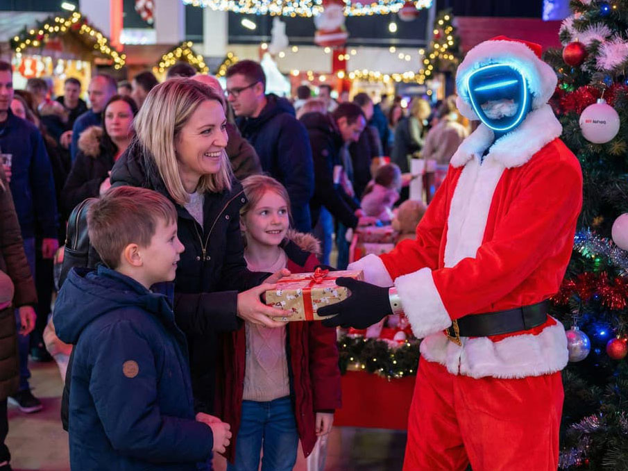 Праздничный костюм превращает робота в источник позитива. Гости фотографируются, делятся контентом в соцсетях — ваш бренд получает органический охват в праздничной атмосфере.