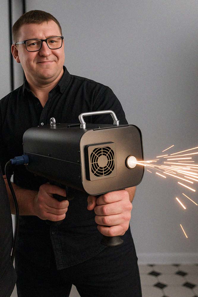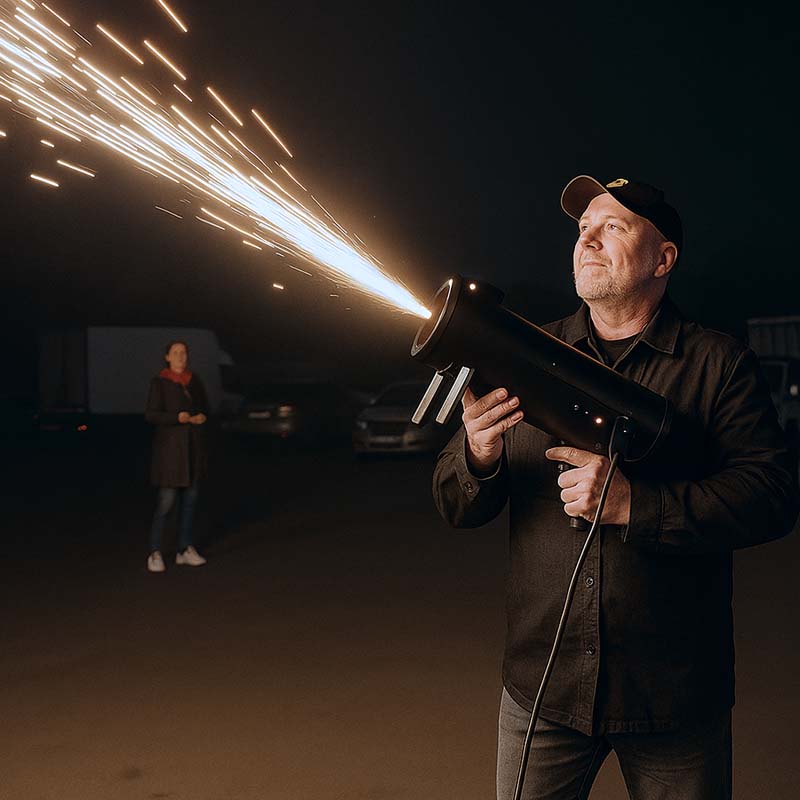 Встречайте революционные искровые машины! Эти портативные устройства, легко носимые на плечевом ремне, станут важнейшим инструментом для ди-джеев, ведущих, организаторов вечеринок, корпоративных мероприятий и частных торжеств. Они также идеально подходят мастерам спецэффектов и аниматорам, работающим на различных шоу. Примечательно, что для работы используется общедоступный порошковый расходник.