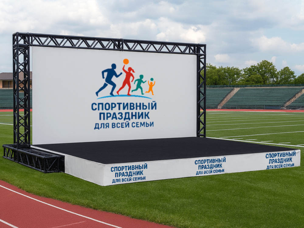 Предлагаем в аренду современную сцену из ферм размером 6х4 метра — универсальное решение для организации мероприятий любого формата. Конструкция разработана с учетом всех требований безопасности и комфорта как для выступающих, так и для зрителей.