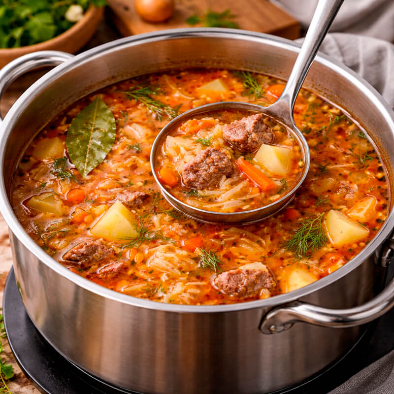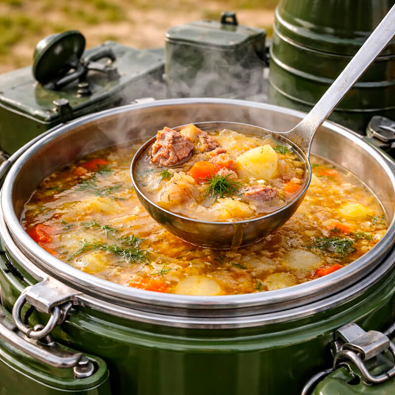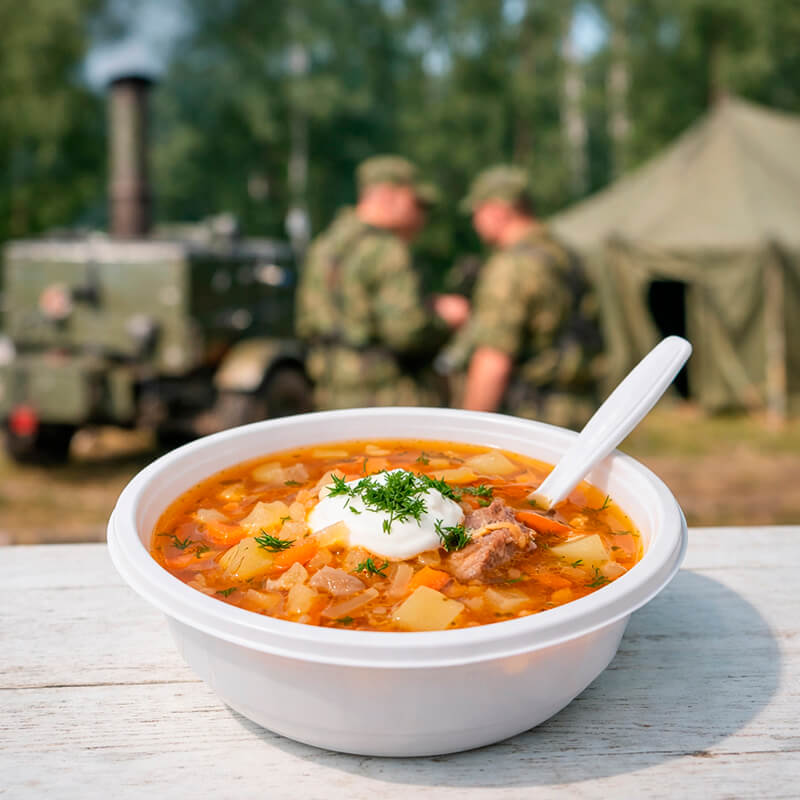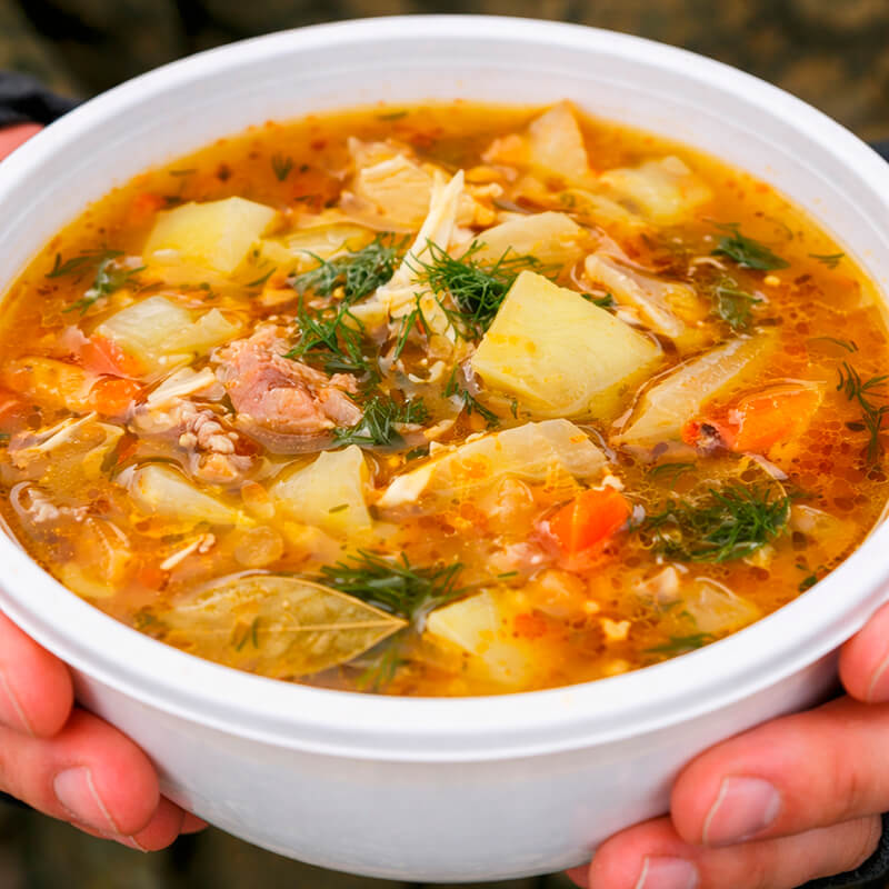 Насладитесь насыщенным вкусом традиционного блюда с кисловатым оттенком свежей капусты, мясистыми кусочками говядины и пряными травами. Щи отлично подойдут для утоления голода и поддержания тепла даже в прохладную погоду. Быстрая доставка горячего блюда осуществляется в удобных герметичных упаковках. Предлагаются услуги организации питания как в помещениях, так и на открытых площадках. Порция — 200 граммов. Возможна организация полевой кухни с супами, включая щи.