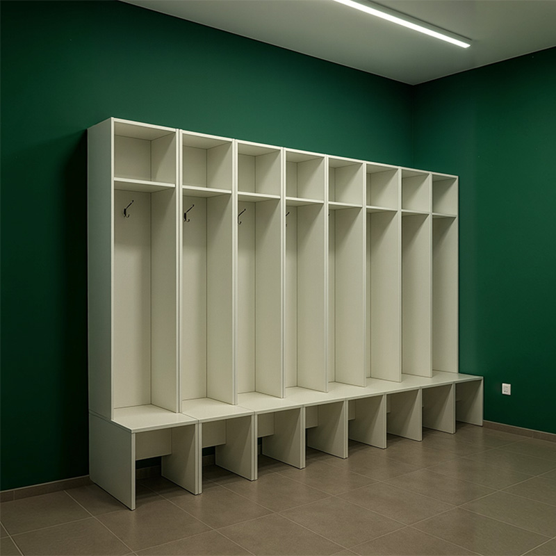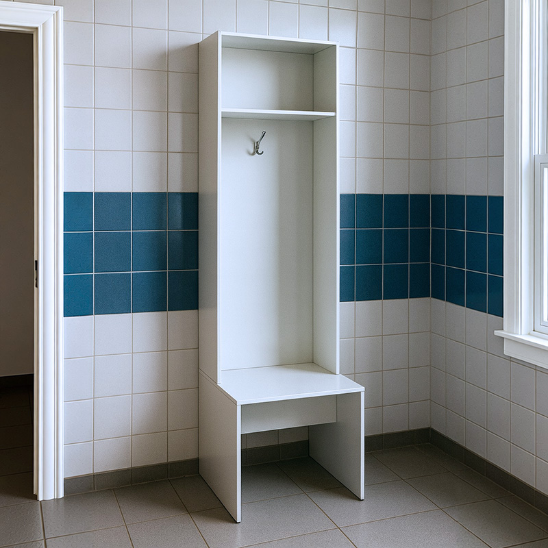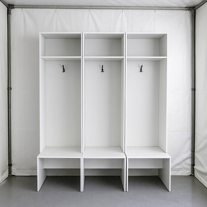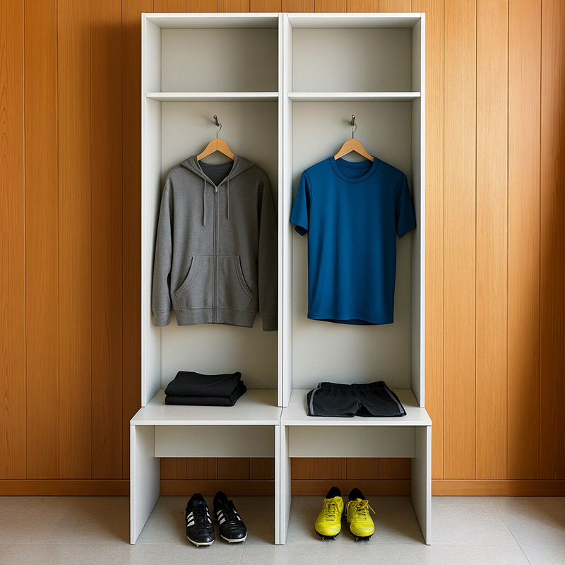 Универсальное и надежное решение для переодевания и хранения одежды в спортивных залах и прочих помещениях. Конструкция компактная и функциональная, идеально подходит для использования в раздевалках, спортивных залах, офисах или других общественных помещениях. Дизайн лаконичный, без лишних декоративных элементов.