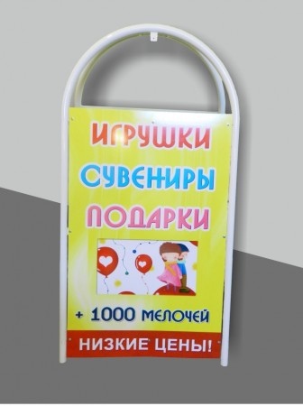 Предлагаем аренду двустороннего рекламного стенда – отдельно стоящей, легко раскладывающейся металлической стойки. Данное приспособление состоит из несущего каркаса и двух информационных поверхностей, предназначенных для крепления вашей афиши, сведений о дате, времени и точном месте организации семинара, конференции или иного мероприятия. Этот удобный штендер-раскладушка поможет гостям без труда отыскать локацию вашего события.