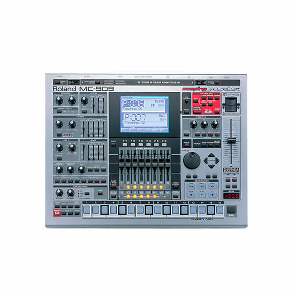 Roland MC-909 — профессиональный грувбокс, сочетающий синтезатор, семплер, секвенсор и процессор эффектов. Имеет 215 встроенных паттернов, полифонию 64 голоса, мультитембральность 16 частей. Управление осуществляется через динамические пэды, слайдеры и два бесконтактных D-Beam контроллера. Размеры: 491×386×123 мм, вес: 6 кг. Поддерживает форматы WAV/AIFF, оснащен слотом SmartMedia и интерфейсом USB. Оснащён мощными эффектами, включая компрессор, ревербератор и мульти-FX.