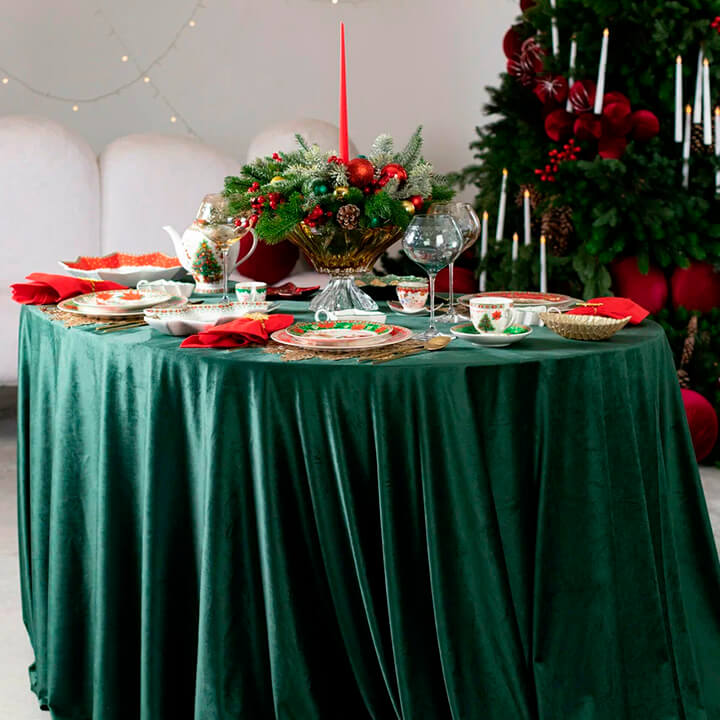 Прокат бархатной скатерти цвета изумруд 3,2 м