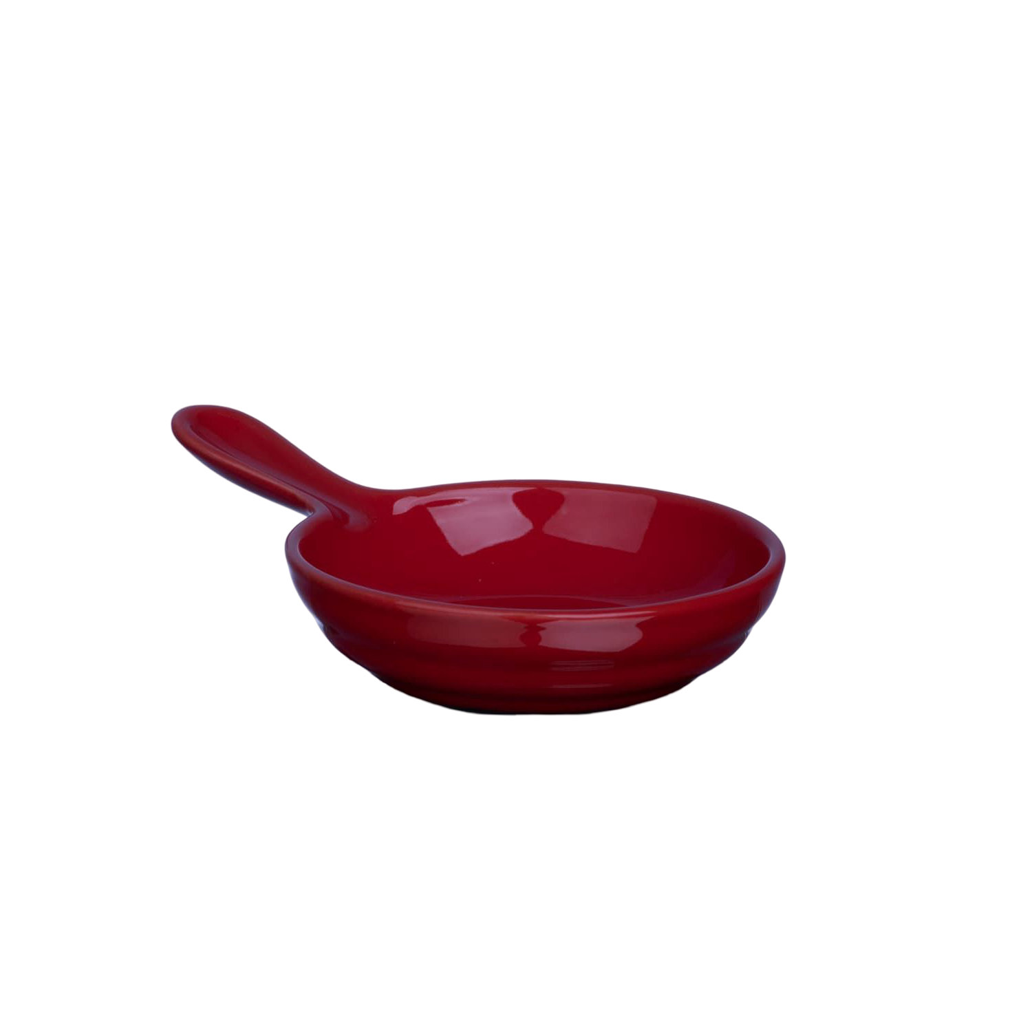 Сковорода с ручкой красная D=107 мм, 120 мл мм, для подачи закусок, сохраняя элегантность и удобство использования. Прочность и надёжность обеспечивают долговечность даже при активном использовании. Сочетание удобства и эстетики делает его незаменимым элементом стола.