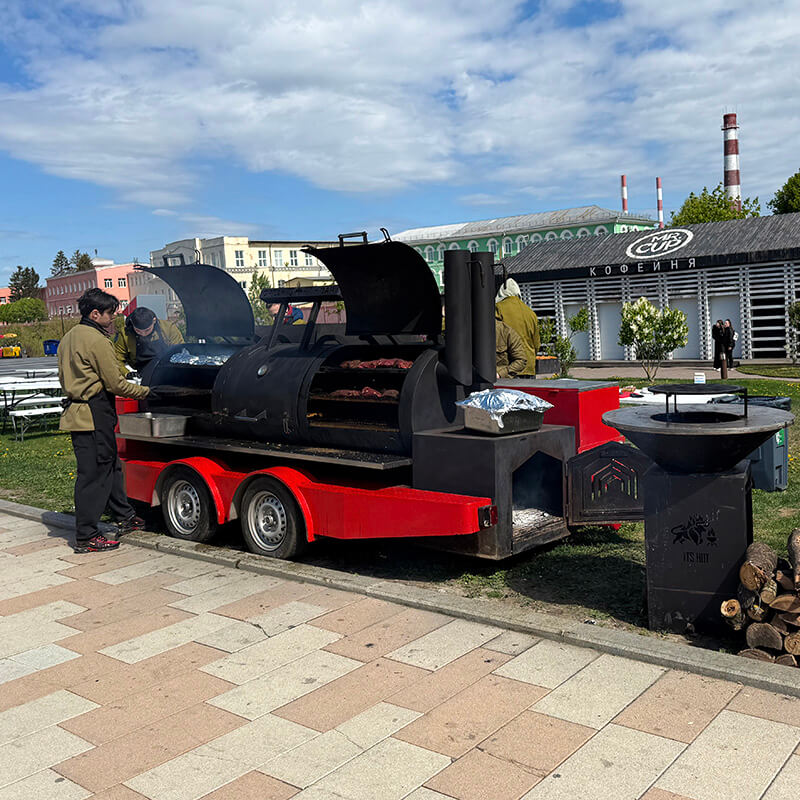 Станция Техасский Смокер — это мобильная площадка для организации грандиозного барбекю-шоу. Представляет собой красочный цельнометаллический прицеп с профессиональным оборудованием, способным одновременно готовить до 750 кг аппетитного мяса на ароматных фруктовых дровах. Идеальна для крупных мероприятий, корпоративов и фестивалей, обеспечивая эффектную презентацию и великолепный вкус блюд, приготовленных методом slow-cooking. Доступна аренда под ключ с доставкой и полным обслуживанием, гарантирующим исключительный гастрономический опыт вашей публике.