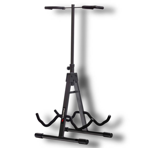 Когда прокатчики сталкиваются с необходимостью уместить все нужное для музыкантов на скромной площади 5680, будь то корпоратив или частное мероприятие, незаменимым решением становится эта двойная стойка. Предназначенная для акустической и электрогитары и оборудованная грифодержателем, она занимает минимум места — почти столько же, сколько и одинарная модель. При этом её конструкция рассчитана на удвоенную нагрузку, с которой она безупречно справляется, обеспечивая удобство и порядок на сцене.