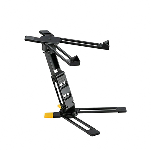 Компактная и быстрая в сборке подставка для ноутбука, идеально подходит для диджеев и музыкантов. Три уровня высоты (220, 265, 315 мм), регулируемый наклон экрана, надежная фиксация ножек под микшерный пульт. Легкая конструкция весом всего 1.41 кг выдерживает нагрузку до 10 кг. Удобна для транспортировки благодаря размерам в сложенном виде: 360×175×66 мм.