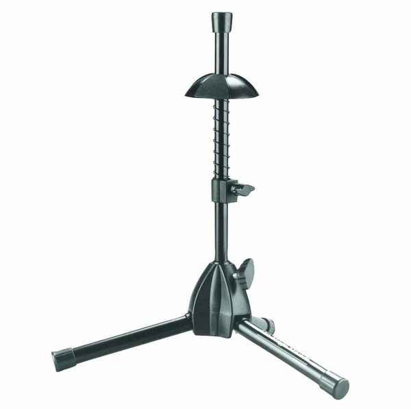 Устойчивая подставка-тренога с компактными складными ножками значительно облегчает её перевозку и последующее хранение. Опоры оснащены резиновыми торцами для предотвращения нежелательного скольжения, а специальный прорезиненный конус гарантирует защиту музыкальных инструментов от царапин. Этот аксессуар является оптимальным выбором для профессиональных трубачей и корнетистов. Опора-держатель подпружинена и легко настраивается, обеспечивая предельно надёжную установку инструмента.