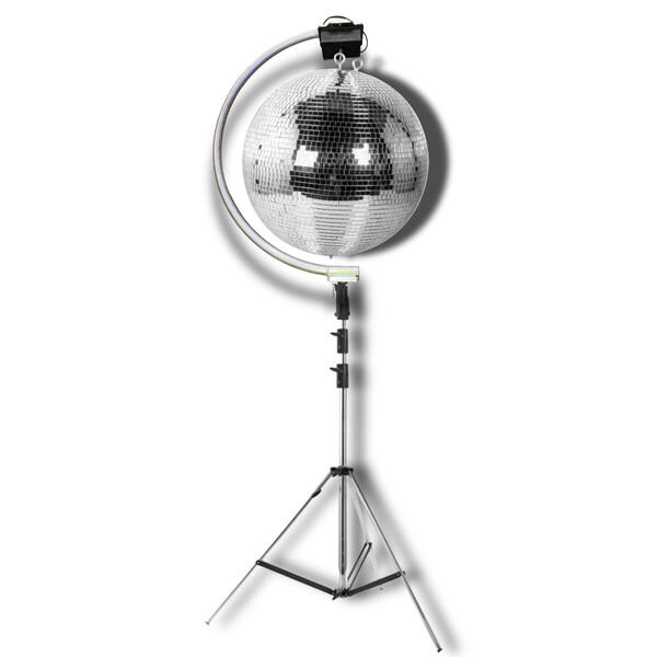 Возьмите напрокат наш уникальный дугообразный держатель на стойке-треноге, с возможностью комплектации механической лебедкой, идеально подходящий для подвешивания диско-шаров размером до 70-80 см. Это революционное решение для работы с декоративными сферами любых габаритов! Монтаж шаров до 50-60 сантиметров может быть осуществлен одним монтажником, в то время как для более габаритных изделий потребуется помощь второго специалиста. Оборудование легко перевозится в обычном легковом авто. Оно гарантирует отменную стабильность и уверенно фиксирует вращающийся механизм.