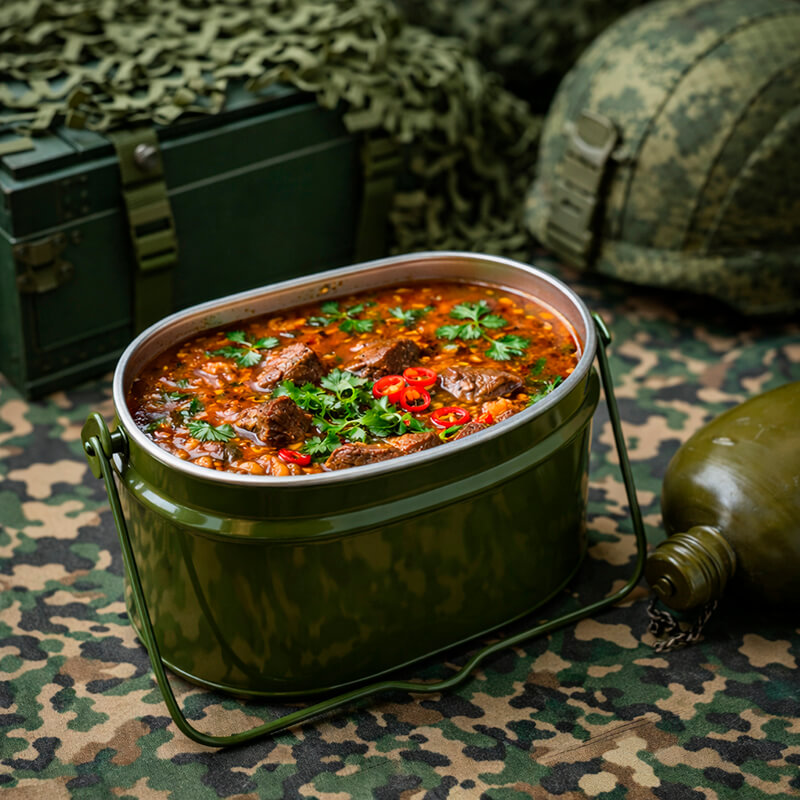 - Организация полевых кухонь: Организуем мобильную кухню прямо на месте вашего мероприятия, обеспечивая свежими порциями вкуснейшего харчо!