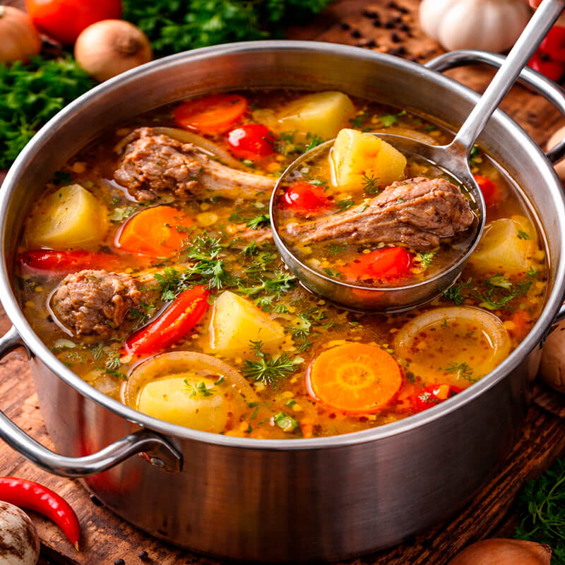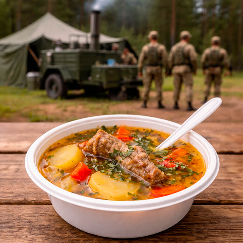 Описание: Шурпа - наваристый восточный суп на мясном бульоне. Его ключевые особенности: насыщенный бульон, крупно нарезанные овощи, минимум специй (основной аромат дают мясо и свежая зелень), длительное томление. В классическом варианте используют баранину, но есть варианты с говядиной и курицей. Мы можем организовать «полевую кухню» с супами, в том числе суп Шурпа.