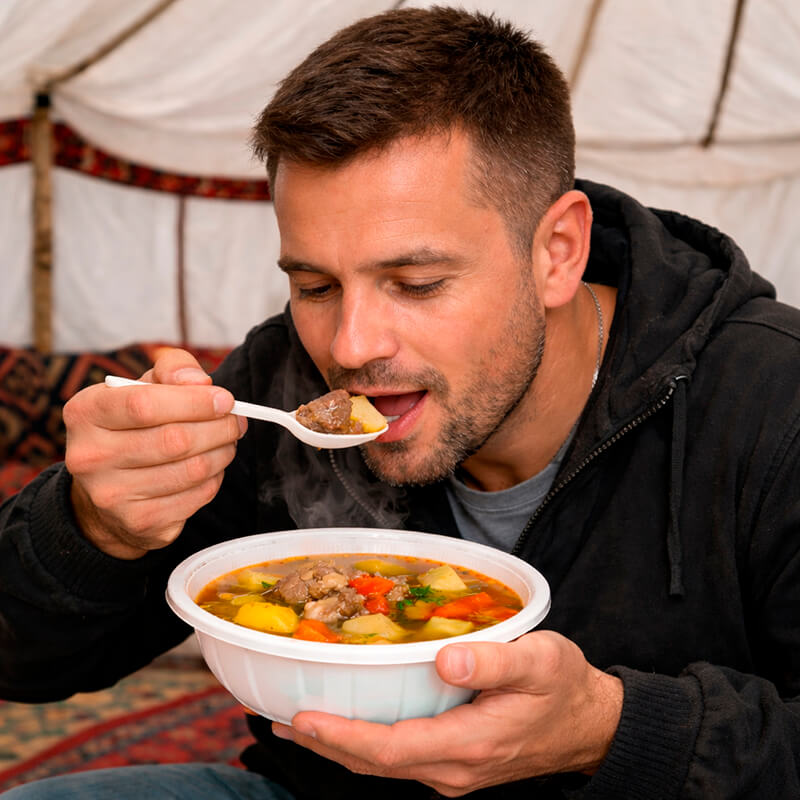 Помимо доставки готового блюда, мы также готовы создать особую атмосферу, предложив организацию полевой кухни прямо на вашем мероприятии. Представьте себе живописный костёр, аромат свежего дыма и горячие тарелки аппетитного супа, среди которого непременно будет знаменитая шурпа!