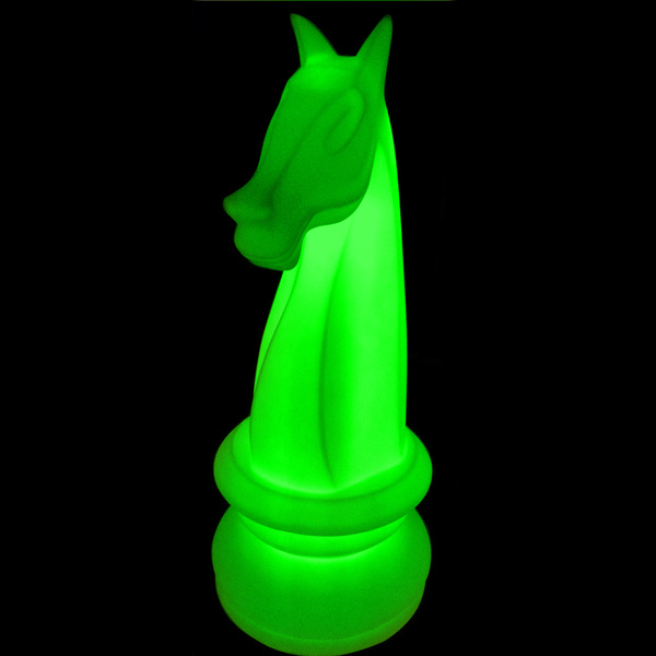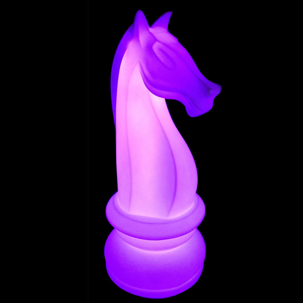Декоративный LED-конь KNIGHT — это объемная световая инсталляция с автономным питанием от аккумулятора. В комплекте идет пульт, с которого можно задать один постоянный цвет свечения, включить динамический режим смены оттенков с настраиваемой скоростью или эффект мерцания. Такой светящийся жеребец эффектно украсит входную группу на вечеринке или в клубе, станет центром внимания на детском празднике и послужит отличным подарком для рожденных под знаком лошади. При желании, фигура может стать частью большой композиции из LED-шахмат для создания уникального интерьера или проведения необычной игры.