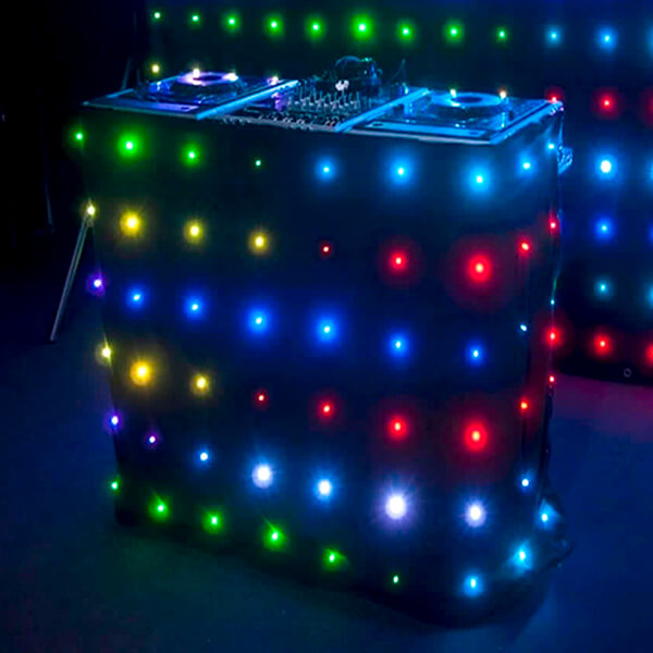 Светодиодное полотно размером 2x3 метра — удобное и мобильное решение для оформления DJ-стойки. Комплектуется 30-ю динамическими эффектами, имеет срок службы светодиодов 50 тысяч часов и потребляет всего 51 Вт. Управляется автоматически либо по протоколу DMX-512 (8 каналов). Отлично подойдёт для создания яркой и современной атмосферы на любом событии.