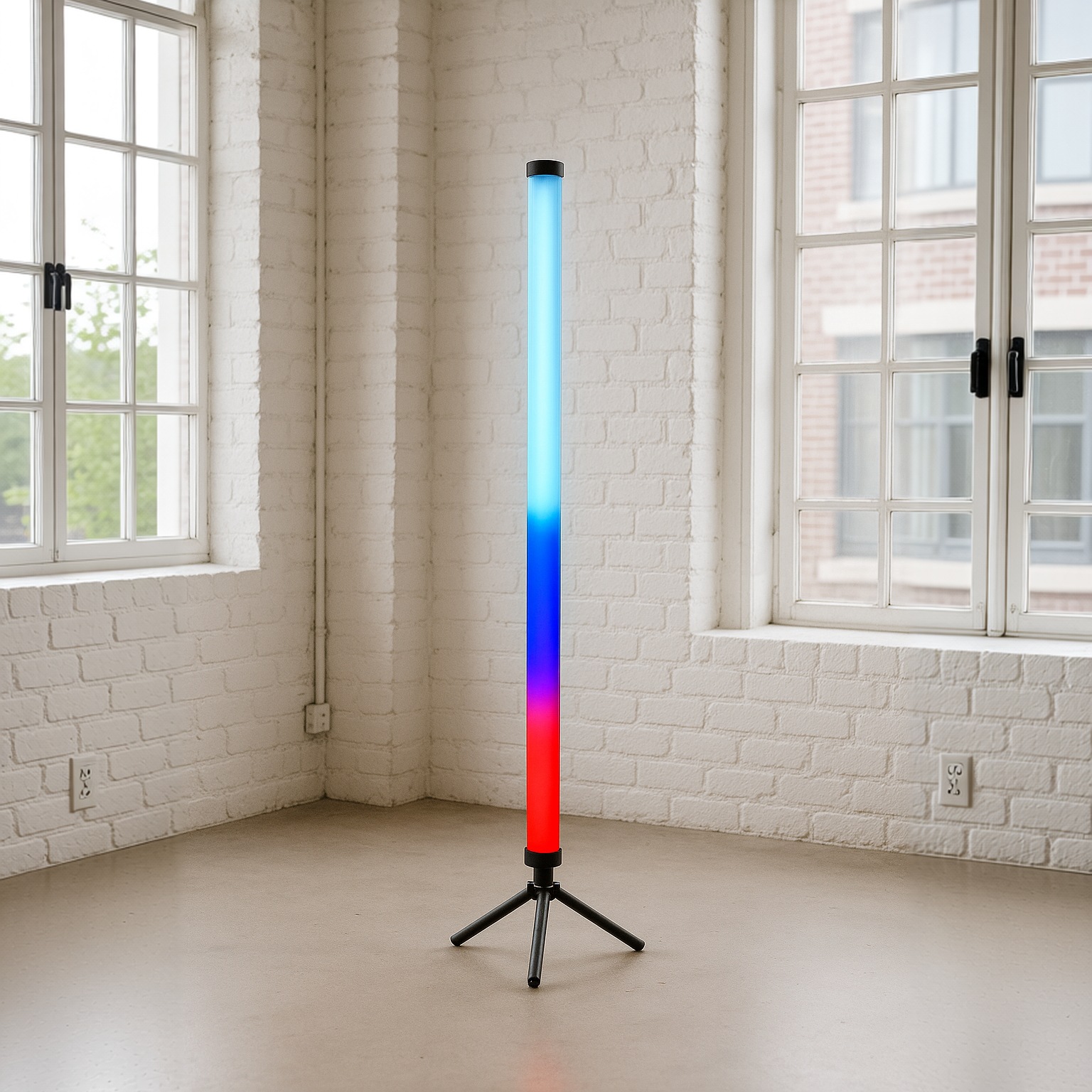 Метровые полимерные трубки, отличающиеся минимальным весом и оснащенные штативами, могут служить как эффектными вертикальными светильниками, переливающимися всеми оттенками спектра, так и универсальными элементами оформления. С их помощью легко декорировать сценические кулисы и фон, а также формировать различные буквенные и цифровые знаки. Подключить их можно с помощью USB-разветвителя или пауэрбанка на 4-7 штук.
