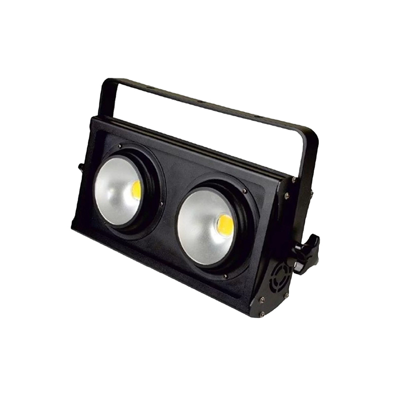 Светодиодный блайндер с двумя мощными светодиодами типа COB (Chip-on-Board) по 100 Вт каждый. Прибор предназначен для использования в сценических шоу, клубах, на концертах и других мероприятиях, где требуется создание динамичных световых эффектов.