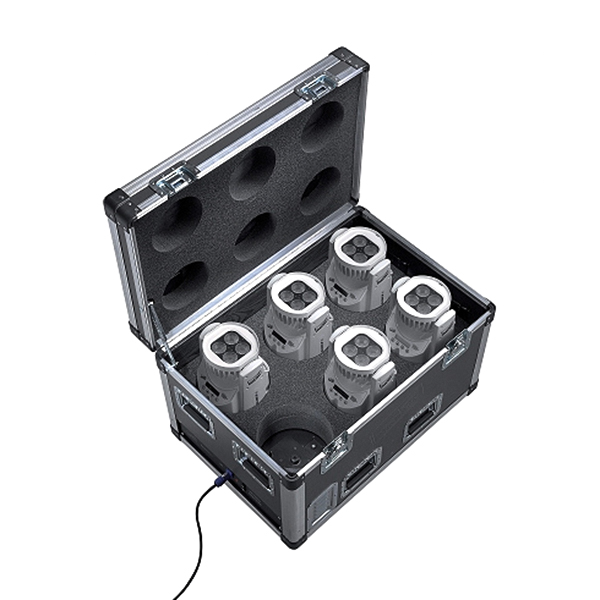 Компактный LED-прожектор для профессиональных световых решений. Оснащён четырьмя 10-ваттными светодиодами, выдаёт яркий световой поток в 1200 люмен. Поддерживает регулировку угла освещения от 15 до 30°. Работает от аккумулятора до 10 часов на полную мощность и до 20 часов в режиме смены цветов. Универсальная система управления включает автономный режим, поддержку протокола DMX и мастер-ведомый режим. Имеет прочный корпус класса защиты IP65, лёгкую конструкцию весом 7,5 кг и удобные габариты (226×226×365 мм). Поставляется в защитном кейсе с колесиками для быстрой транспортировки.