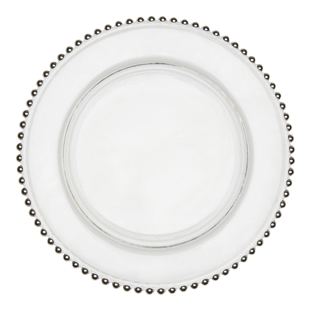 Тарелка подстановочная 32 см Ариэль стекло с серебряными бусинками