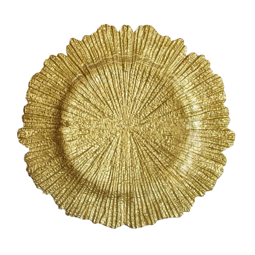 Тарелка подстановочная 32 см Коралл золото см идеально подойдёт для сервировки различных блюд на банкетах и фуршетах. Универсальность делает его востребованным как для частных праздников, так и для деловых встреч. Сочетание удобства и эстетики делает его незаменимым элементом стола.