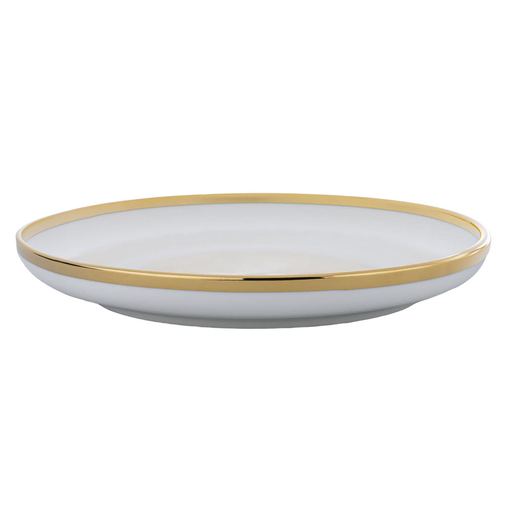 Тарелка подстановочная Беладонна белая с золотой каймой D-25,5см H-3,5см D-25,5см идеально подойдёт для сервировки различных блюд на банкетах и фуршетах. Прочность и надёжность обеспечивают долговечность даже при активном использовании. Это практичное решение, которое ценят организаторы мероприятий.