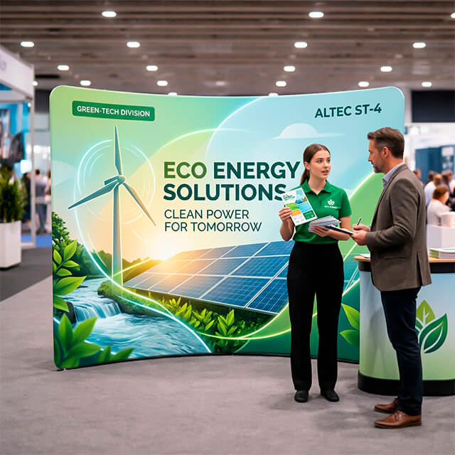 Altec ST-4 — идеальный выбор для выставок, презентаций и других мероприятий. Привлекательный дизайн и высококачественные материалы делают его незаменимым помощником. Уникальная полукруглая форма стенда эффективно использует пространство и привлекает внимание к вашему сообщению. Этот современный текстильный стенд объединяет элегантность, мобильность и удобство. Он подходит для различных задач и помогает создать профессиональный образ.