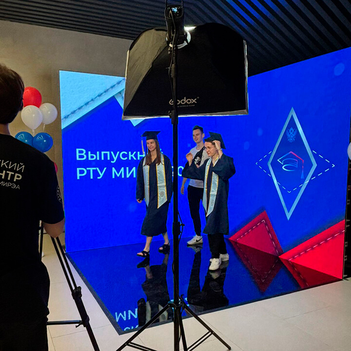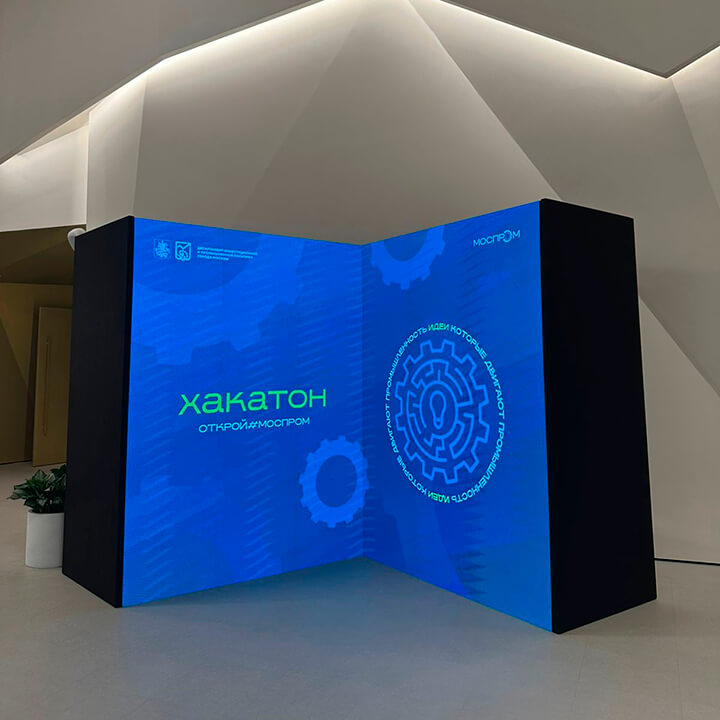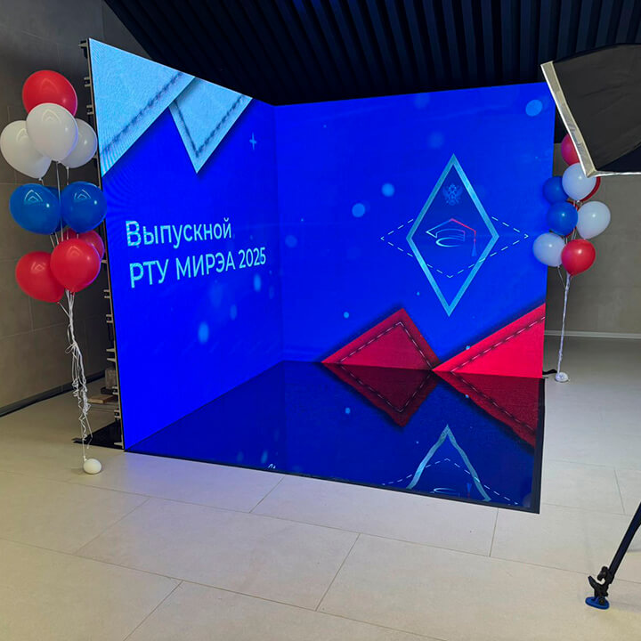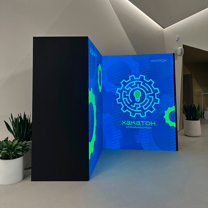 Экран, оборудованный светодиодными модулями, передает насыщенные и яркие цвета, которые будут видны даже с большого расстояния. Такая фотозона станет центром внимания на любом мероприятии и привлечёт к вашему стенду массу гостей.