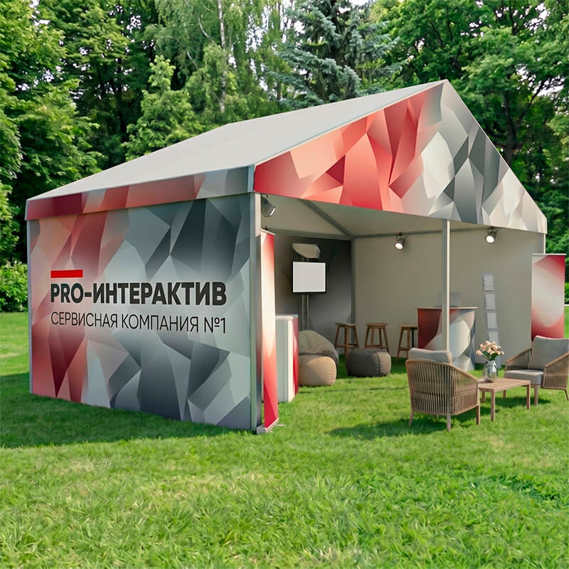 Планируете мероприятие на свежем воздухе? Возьмите в аренду уличный стенд с шатром‑павильоном 10×15 м — и забудьте о хлопотах! Просторный павильон площадью 150 м² создаст уютную зону для гостей и укроет их от солнца или дождя.