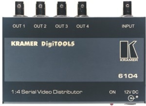 Устройство Kramer 6104 является цифровым распределителем-усилителем SDI сигнала, поддерживающим множество форматов, с конфигурацией 1:4. Отсутствие необходимости в ручной регулировке сочетается с функцией автоматической компенсации потерь сигнала, возникающих в коаксиальных кабелях длиной в сотни метров. Оно способно автоматически идентифицировать различные видеоформаты, обеспечивая совместимость с 8-битным и 10-битным видеопотоком. Будучи компактным и высококачественным представителем серии DigiTOOLS, данный прибор выделяется оптимальным сочетанием цены и качества, обладая обширными возможностями использования. Его функционал делает его незаменимым решением для телевещательных комплексов (для прямого эфира), выездных съемок и современных цифровых SDI-студий.