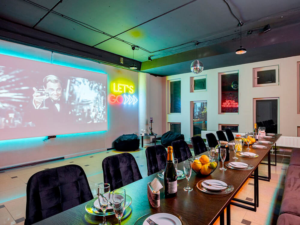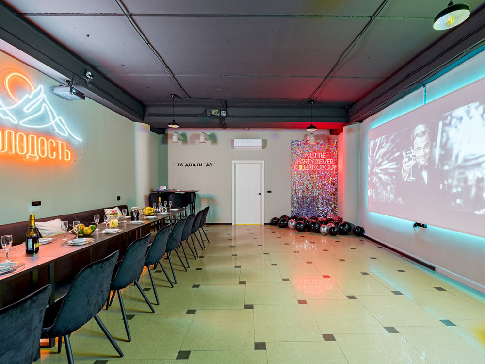 Vibes Loft Disco — это идеальное пространство для незабываемых вечеринок и танцев в Москве. Просторная площадка площадью 50 м² вмещает до 35 человек и предлагает все необходимое для создания атмосферы праздника: 3 дивана, барная стойка, сцена с караоке, кальянная зона, профессиональный звук Dolby Audio и огромный экран. Красивая посуда, бокалы и другие аксессуары обеспечат комфорт и стиль.