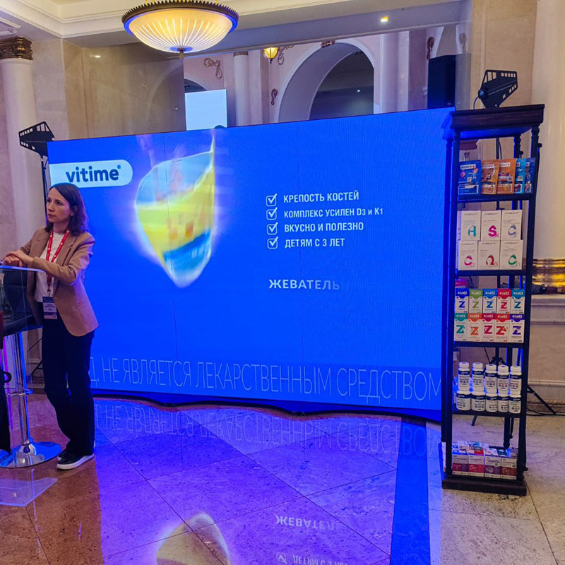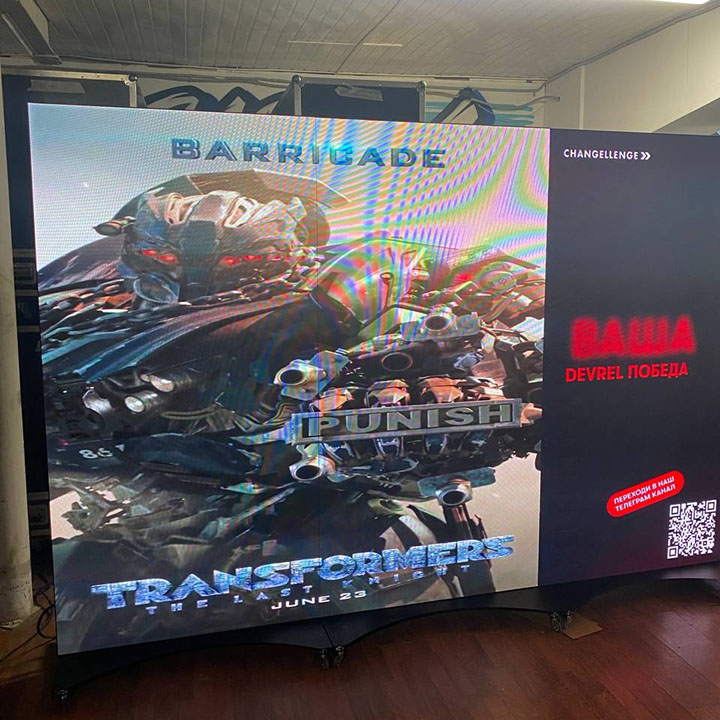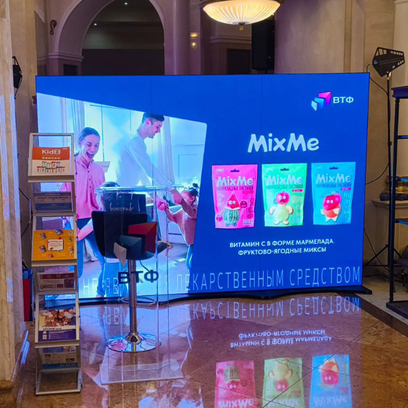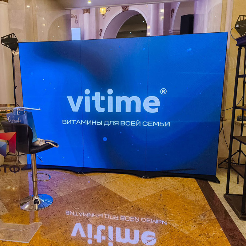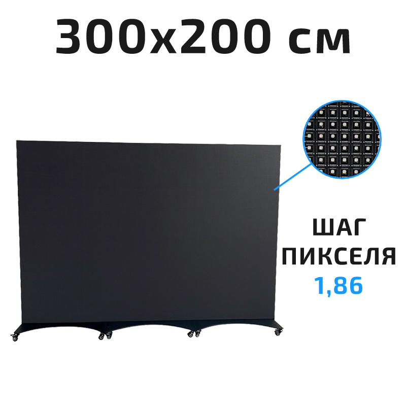 Создайте незабываемое впечатление на вашем событии с помощью профессионального видеополотна из трех соединяемых модулей-пилонов. Каждый отдельный экран обладает высоким качеством изображения с разрешением 516×1032 пикселей, а объединённый экран достигает внушительного размера 3×2 метра с итоговым разрешением 1548×1032 пикселей и шагом матрицы всего 1,86 мм.