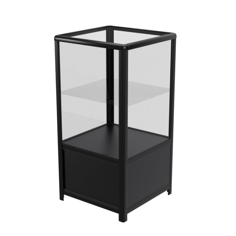 Средняя прямоугольная витрина сочетает черный цвет и стекло, создавая стильный и современный образ. Она универсальна для любых интерьеров и отличается эргономичностью. Товары легко и выгодно выставлять, привлекая внимание покупателей. Прямоугольная форма подходит для помещений любого типа и размера. Витрина долговечна и надежна.