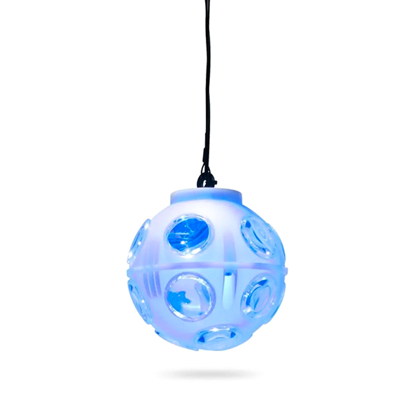- Компактные размеры позволяют легко транспортировать устройство (диаметр шара — 13 см, длина подвесного шнура — 50 см).