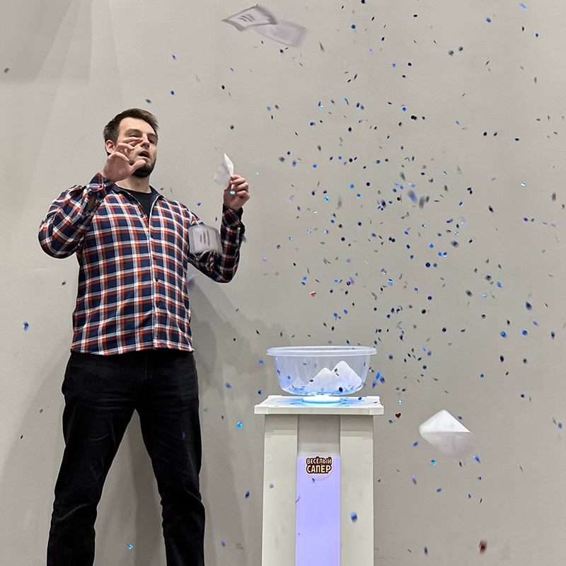 Взрыв-чаша — уникальный аттракцион, созданный для телевизионных шоу Hollywood Game Night и «Подмосковные вечера». Переводит обычные игры и викторины в разряд захватывающих приключений с элементом неожиданности. Таймер усиливает напряжение, а финальный «взрыв» радует зрителей яркой вспышкой эмоций.