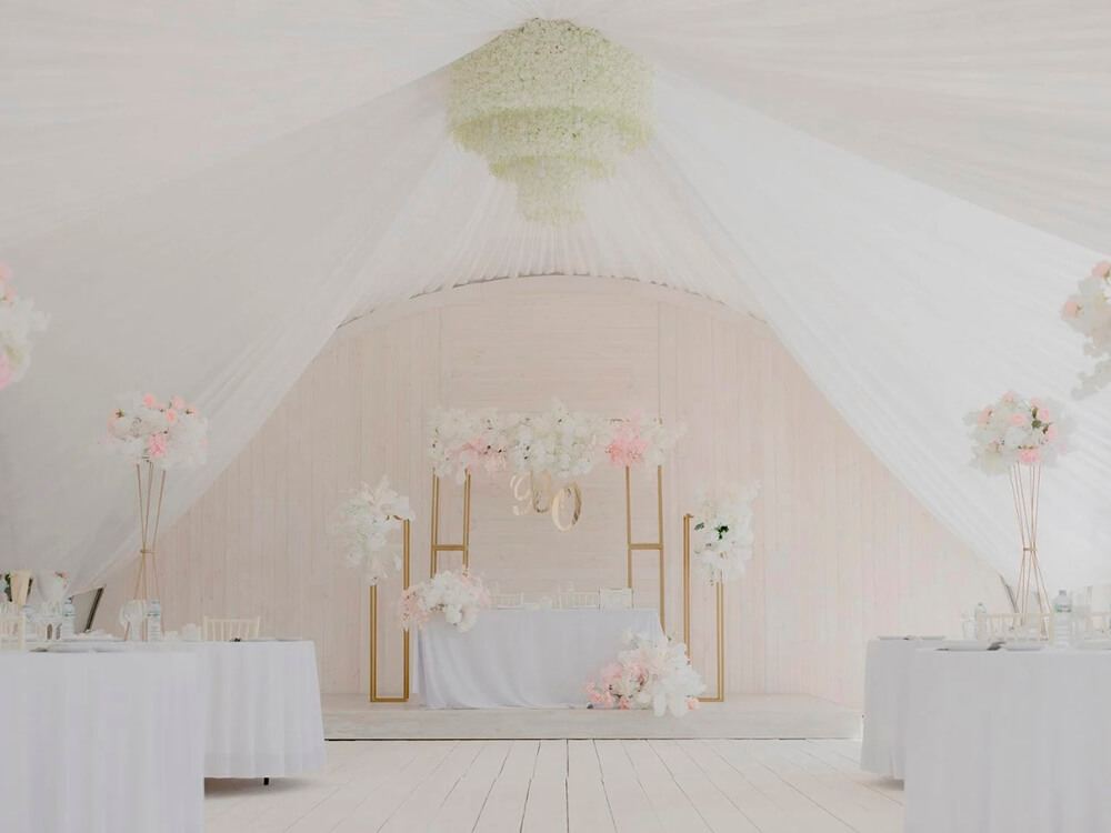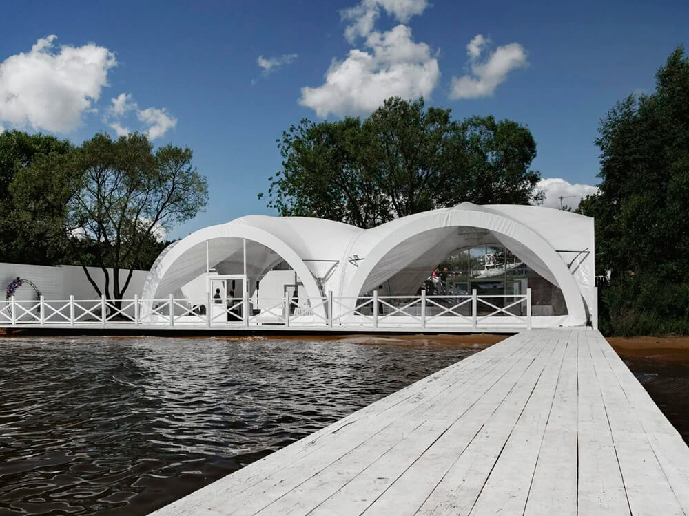 White Podium — это элегантный белый шатер площадью 200 м², расположенный на живописной территории у воды. Идеально подходит для проведения свадеб, юбилеев и других торжеств в атмосфере уюта и уединенности. Просторная прилегающая территория площадью 600 м² оборудована всем необходимым для комфортного отдыха гостей. Шатер вмещает до 80 человек для банкета и до 150 человек для фуршета. Живописный вид на водоем обеспечит незабываемые воспоминания.