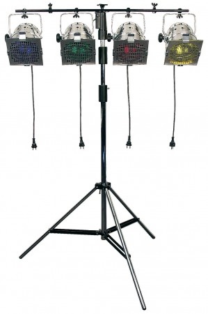 Прожектор PAR-56 генерирует интенсивный световой луч с фиксированным фокусом. Для получения концентрированного или рассеянного светового пучка достаточно сменить совместимые лампы. Это устройство отличается компактным дизайном, представленным в элегантном черном или блестящем хромовом цвете. В комплект поставки включены электрический шнур, держатель для светофильтра, разъем для лампы и защитная решетка. Монтаж лампы внутри корпуса осуществляется посредством пружинной фиксации.
